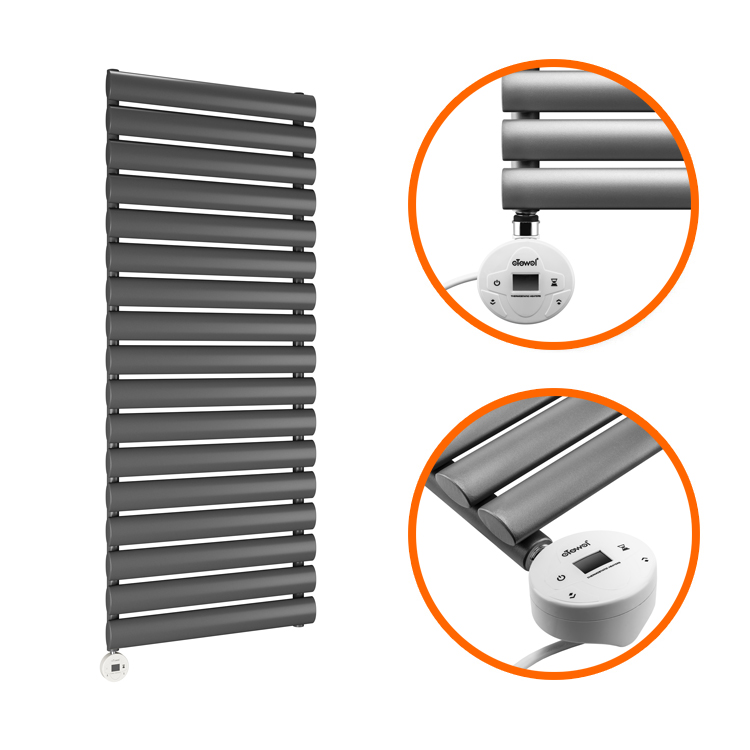 This oval tube vertical designer radiator has a standout textured anthracite finish and comes complete with a heating element which easily allows you to set the radiator at your desired temperature. With the high-quality components used, the radiator heats up exceptionally quick and maintains its warmth for a long duration afterwards.