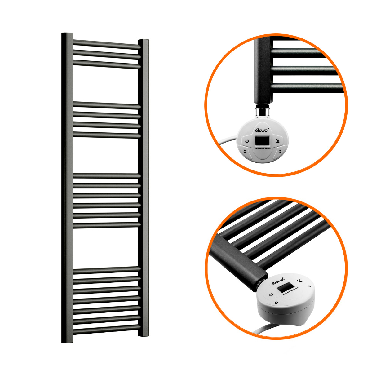 These modern looking electric towel rails have a high-quality textured anthracite finish which is sure to give a striking appearance in your bathroom and with the high-quality components used, the towel rail heats up exceptionally quickly whilst also maintaining its warmth for a long duration afterwards.