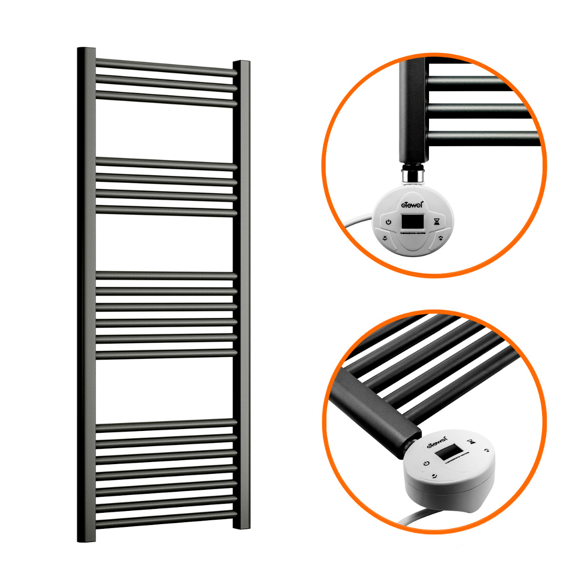 These modern looking electric towel rails have a high-quality textured anthracite finish which is sure to give a striking appearance in your bathroom and with the high-quality components used, the towel rail heats up exceptionally quickly whilst also maintaining its warmth for a long duration afterwards.