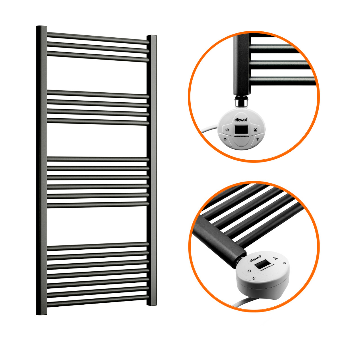 These modern looking electric towel rails have a high-quality textured anthracite finish which is sure to give a striking appearance in your bathroom and with the high-quality components used, the towel rail heats up exceptionally quickly whilst also maintaining its warmth for a long duration afterwards.