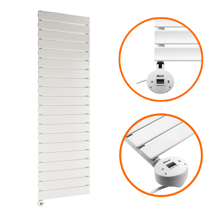 This flat panel vertical designer radiator has a standout soft white finish and comes complete with a heating element which easily allows you to set the radiator at your desired temperature. With the high-quality components used, the radiator heats up exceptionally quick and maintains its warmth for a long duration afterwards.