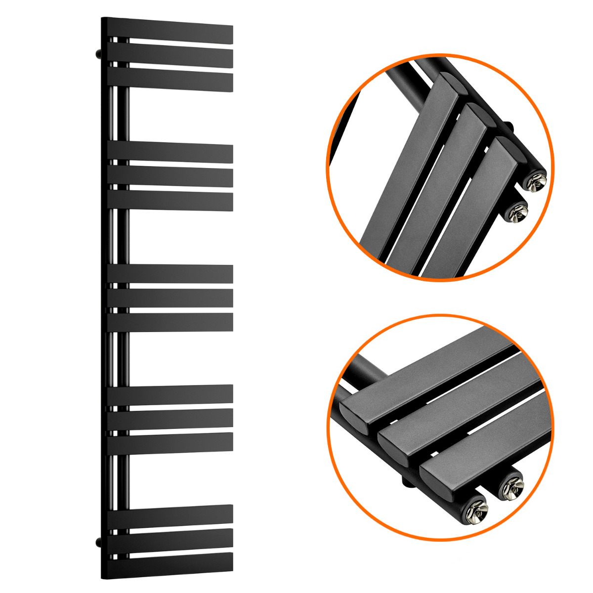 1510 x 400mm Black Flat Panel Bathroom Towel Radiator
