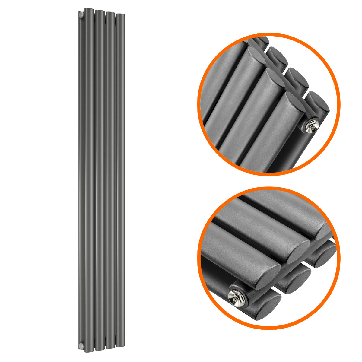 1600 x 236mm Anthracite Double Oval Tube Vertical Radiator
