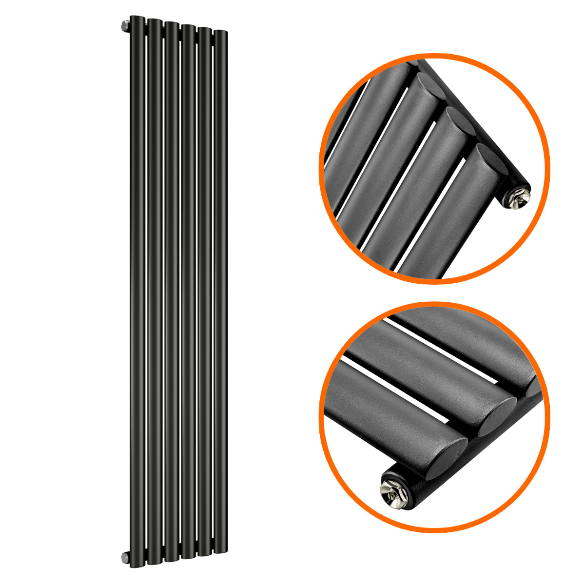 1600 x 354mm Black Single Oval Tube Vertical Radiator