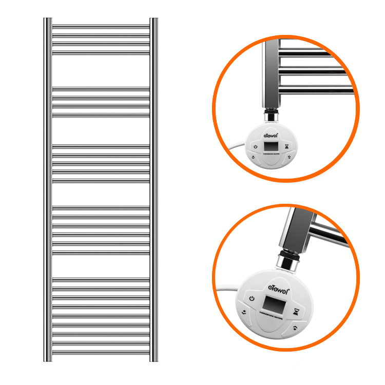 These modern looking electric towel rails have a high-quality polished chrome finish which is sure to give a striking appearance in your bathroom and with the high-quality components used, the towel rail heats up exceptionally quickly whilst also maintaining its warmth for a long duration afterwards.