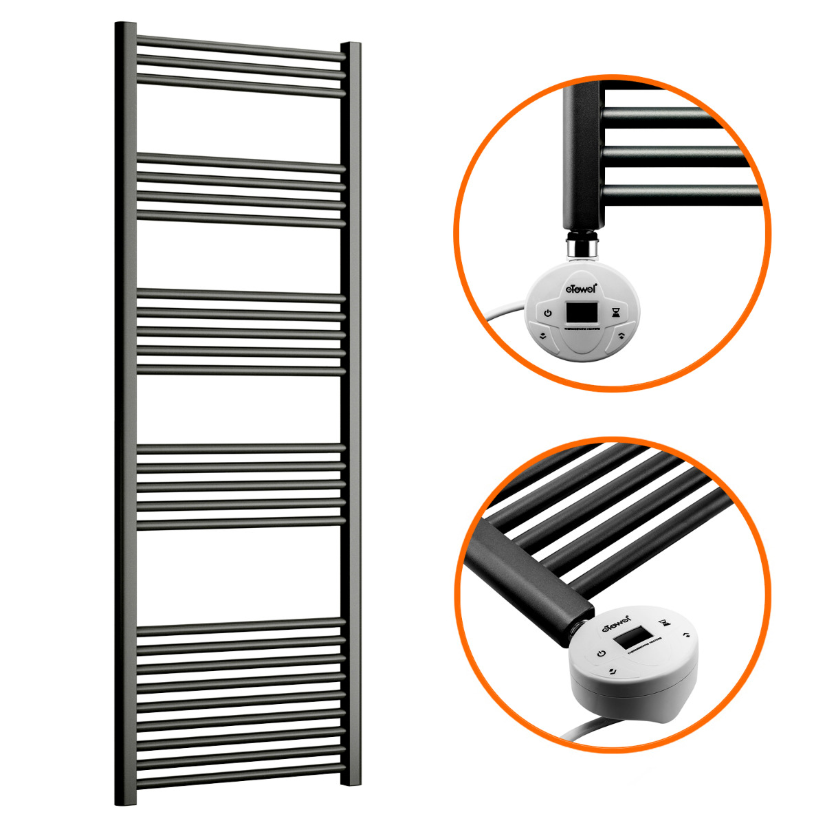 These modern looking electric towel rails have a high-quality textured anthracite finish which is sure to give a striking appearance in your bathroom and with the high-quality components used, the towel rail heats up exceptionally quickly whilst also maintaining its warmth for a long duration afterwards.