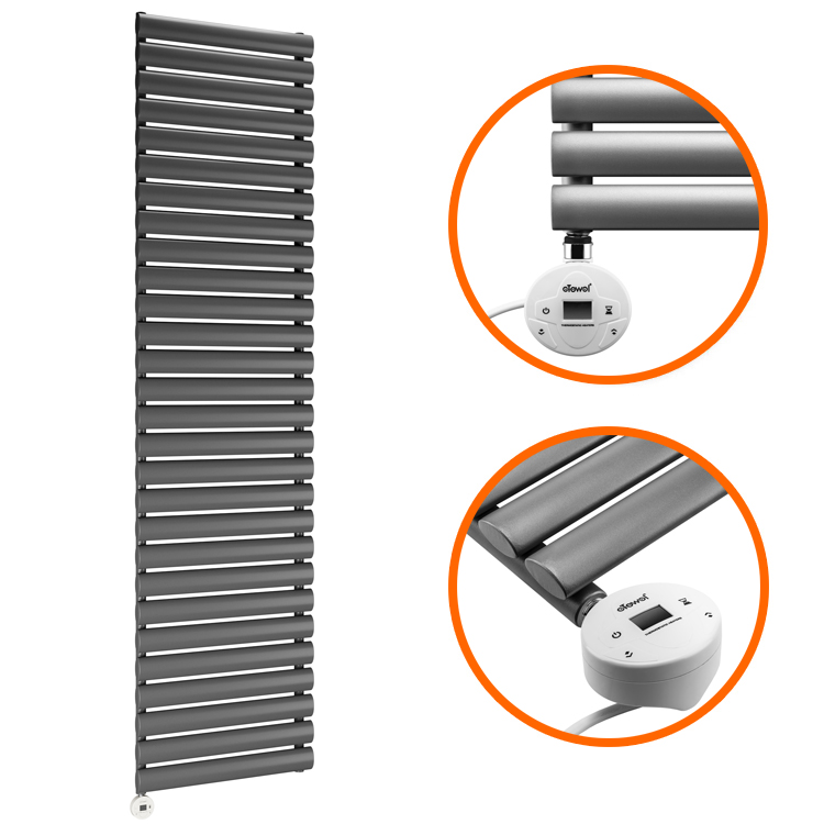 This oval tube vertical designer radiator has a standout textured anthracite finish and comes complete with a heating element which easily allows you to set the radiator at your desired temperature. With the high-quality components used, the radiator heats up exceptionally quick and maintains its warmth for a long duration afterwards.