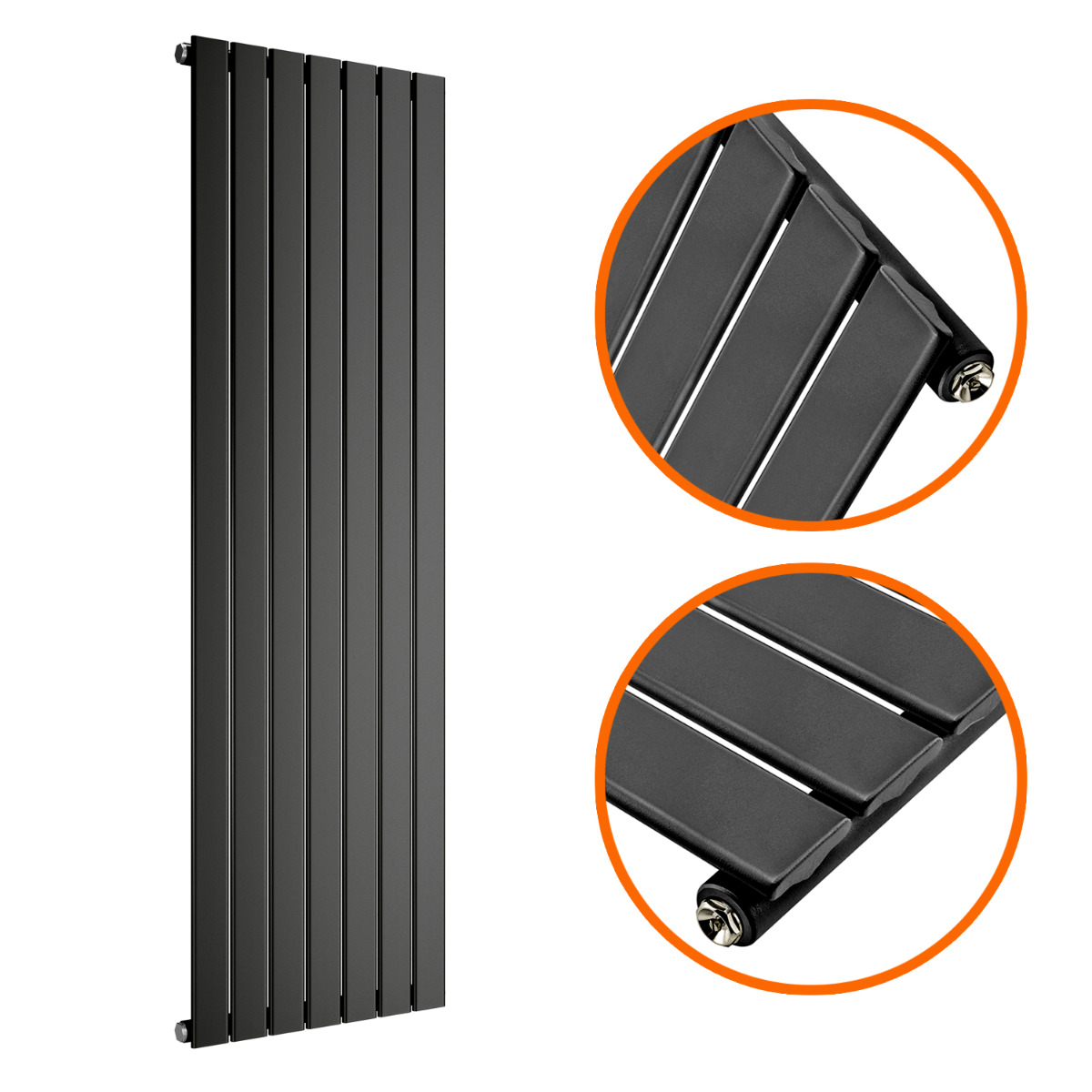 1780 x 490mm Black Single Flat Panel Vertical Radiator
