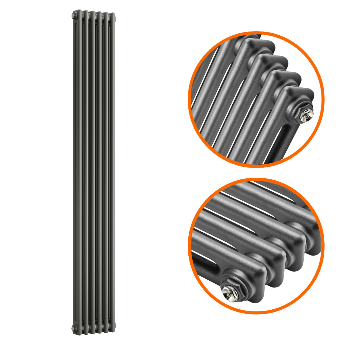 1800 x 293mm Anthracite Vertical Traditional 2 Column Radiator