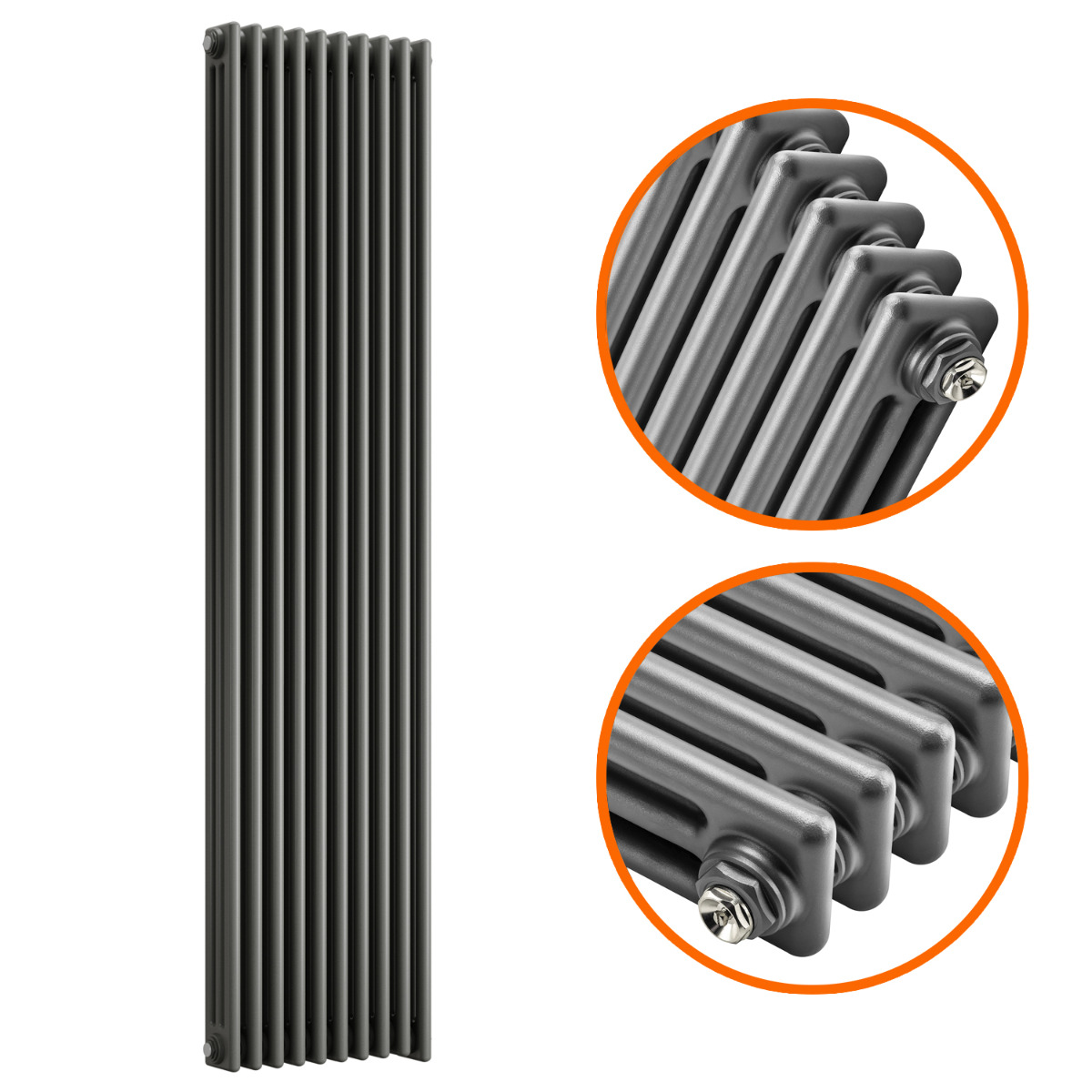 1800 x 470mm Anthracite Vertical Traditional 3 Column Radiator