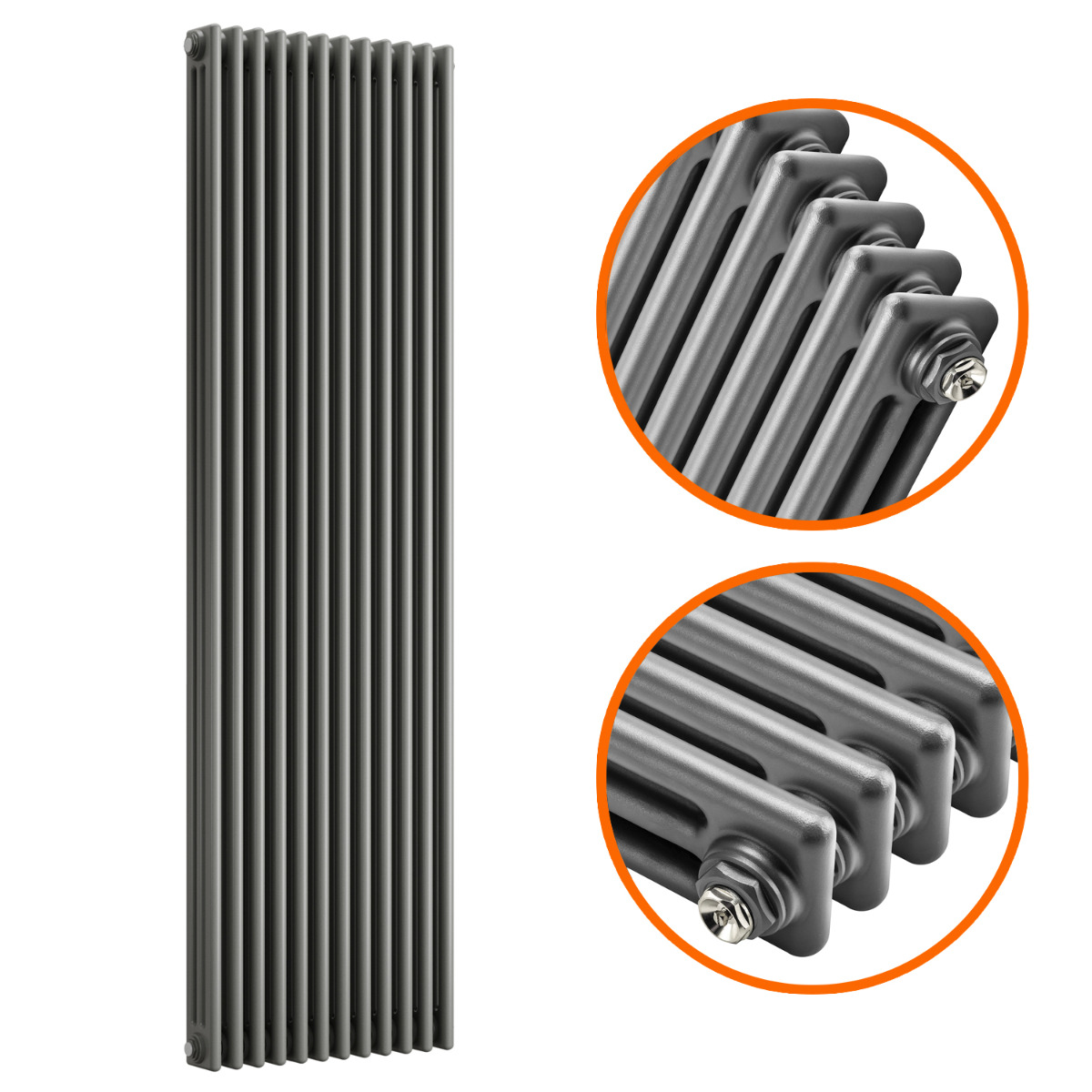 1800 x 560mm Anthracite Vertical Traditional 3 Column Radiator