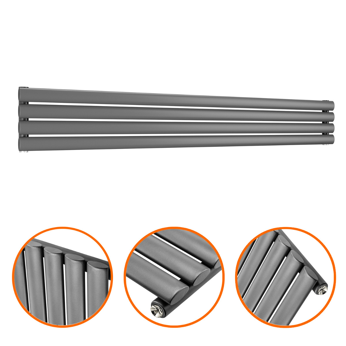 236mm x 1600mm Anthracite Single Oval Tube Horizontal / Landscape Radiator