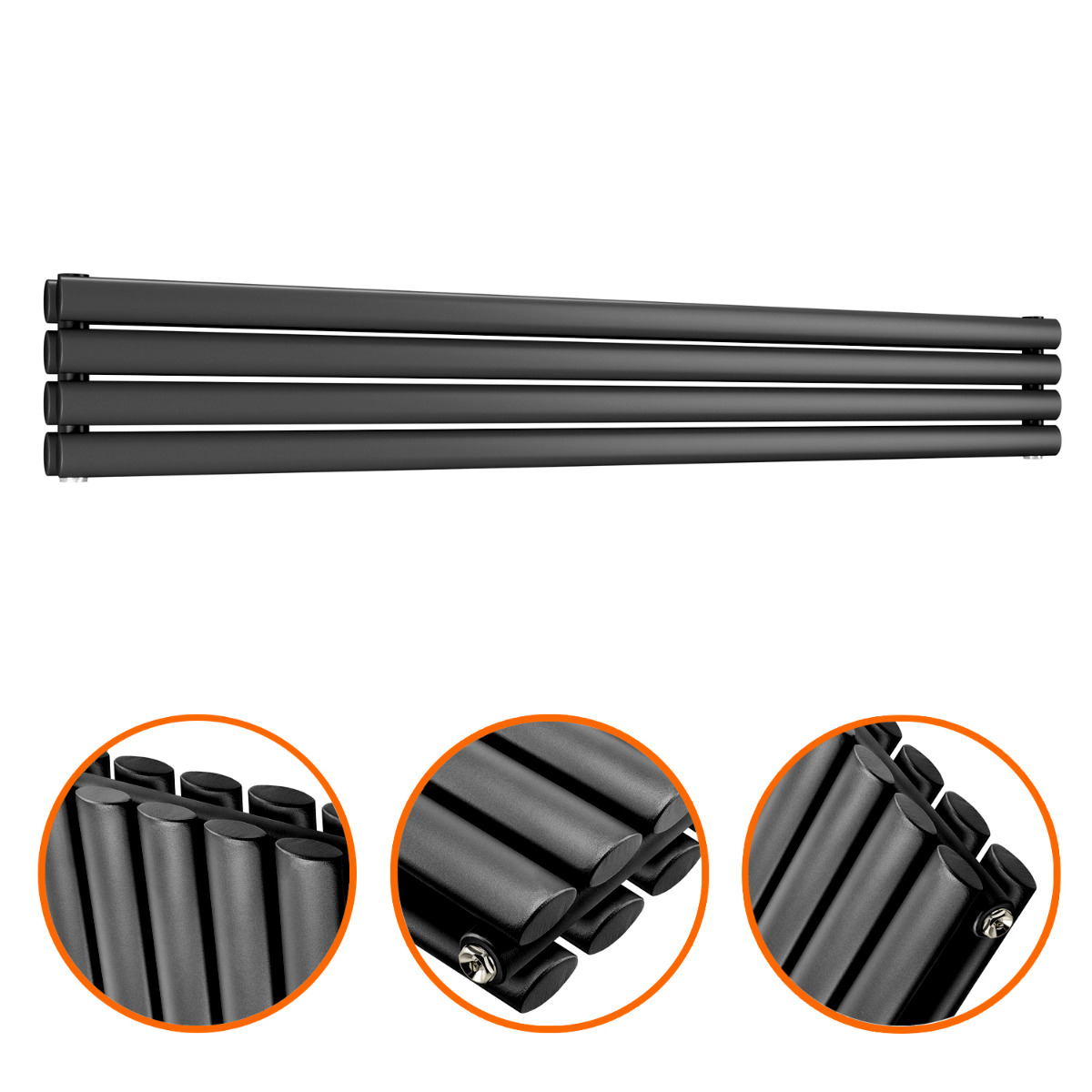 236mm x 1600mm Black Double Oval Tube Horizontal / Landscape Radiator