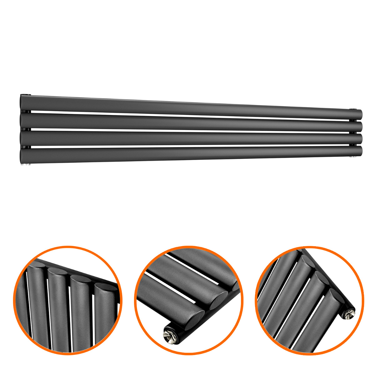 236mm x 1600mm Black Single Oval Tube Horizontal / Landscape Radiator