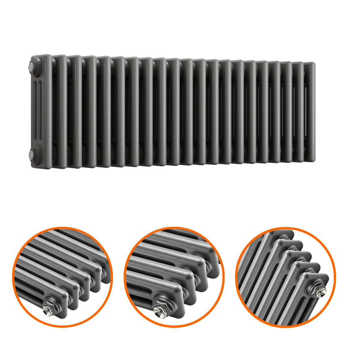 300 x 1013mm Anthracite Horizontal Traditional 3 Column Radiator