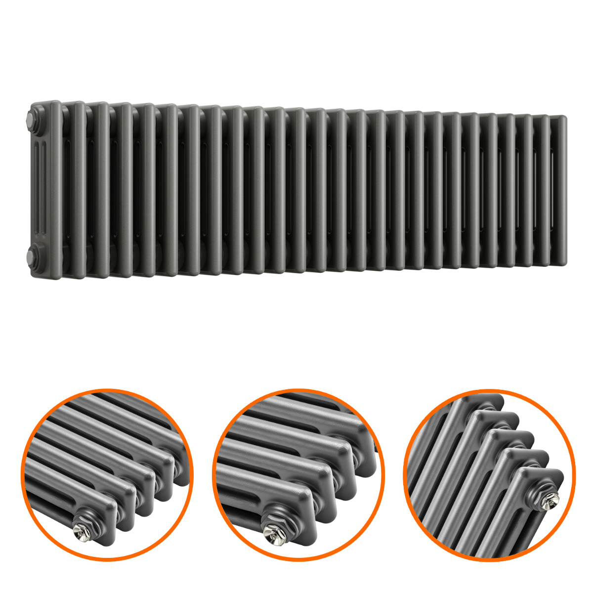 300 x 1193mm Anthracite Horizontal Traditional 3 Column Radiator