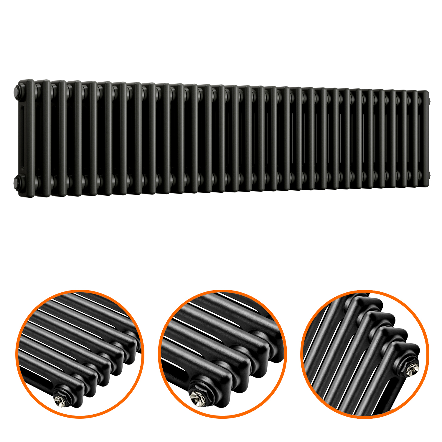 The radiators have a beautiful matte textured black finish which compliments the column design perfectly. This listing is for the two-column variant which is ideal for mid-sized areas in need of a styling and heating overhaul.