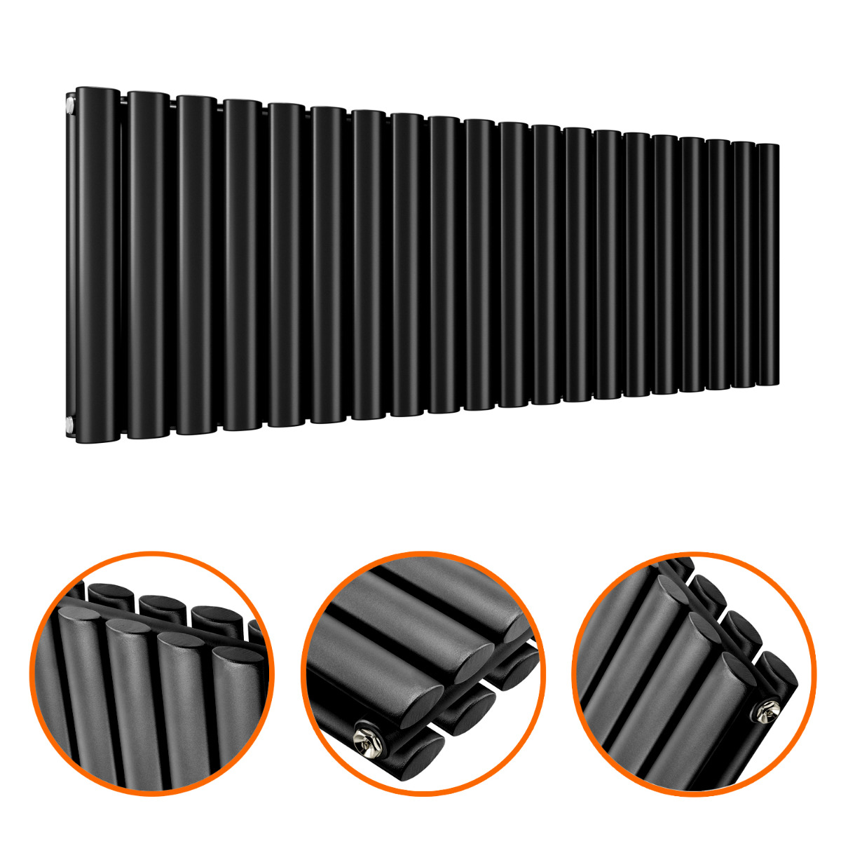 400 x 1180mm Black Double Oval Tube Horizontal Radiator
