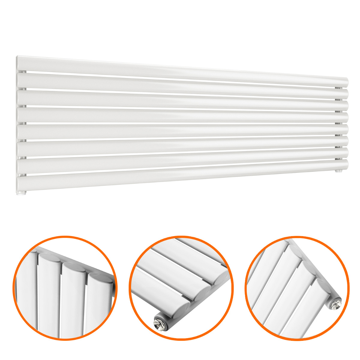 472mm x 1600mm White Single Oval Tube Horizontal / Landscape Radiator