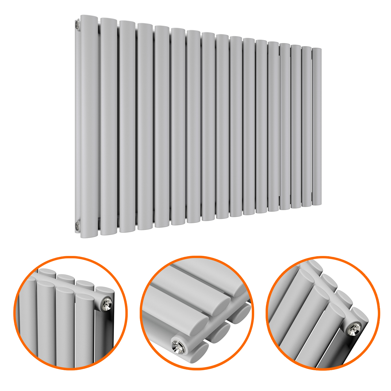 635 x 1000mm Feather Grey Double Oval Tube Horizontal Radiator