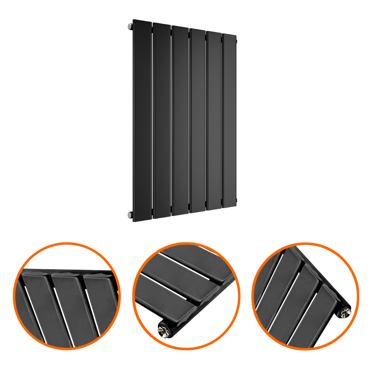 635 x 420mm Black Single Flat Panel Horizontal Radiator