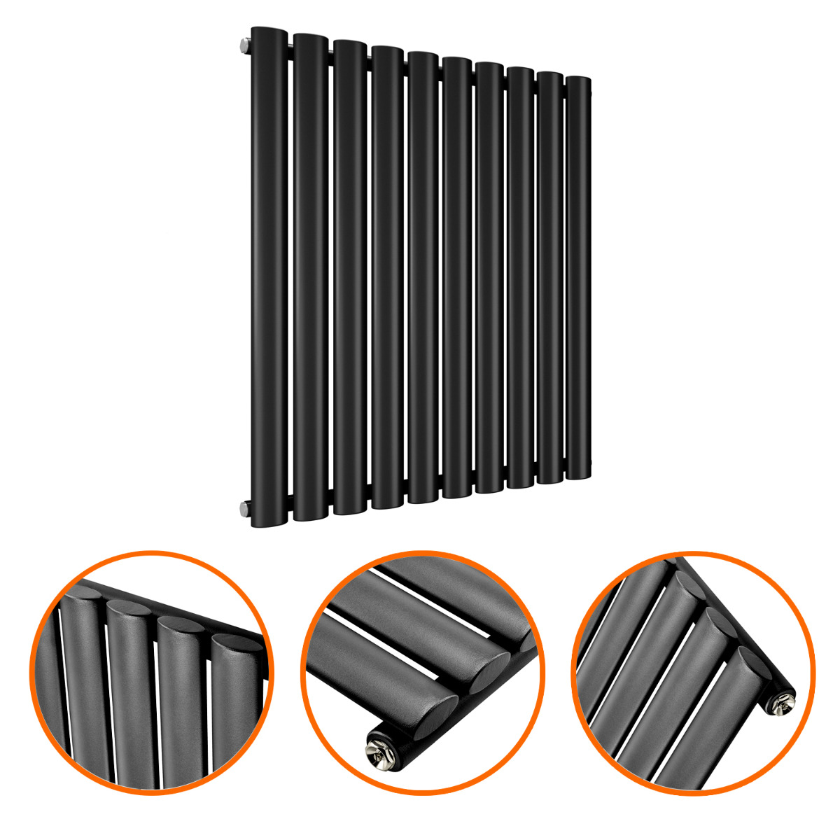 635 x 595mm Black Single Oval Tube Horizontal Radiator