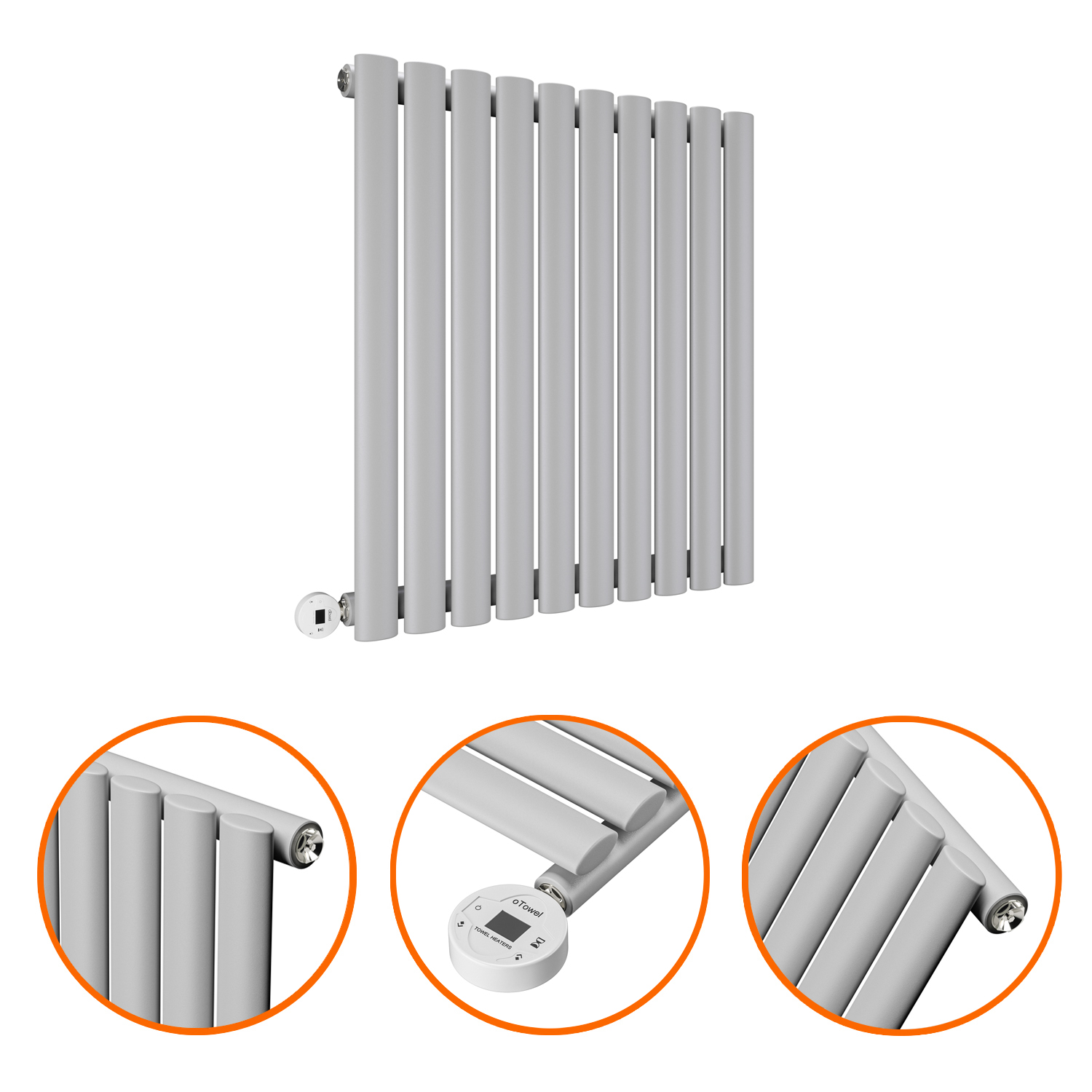 This oval tube designer radiator has a standout soft feather grey finish and comes complete with a heating element which easily allows you to set the radiator at your desired temperature. With the high-quality components used, the radiator heats up exceptionally quick and maintains its warmth for a long duration afterwards.