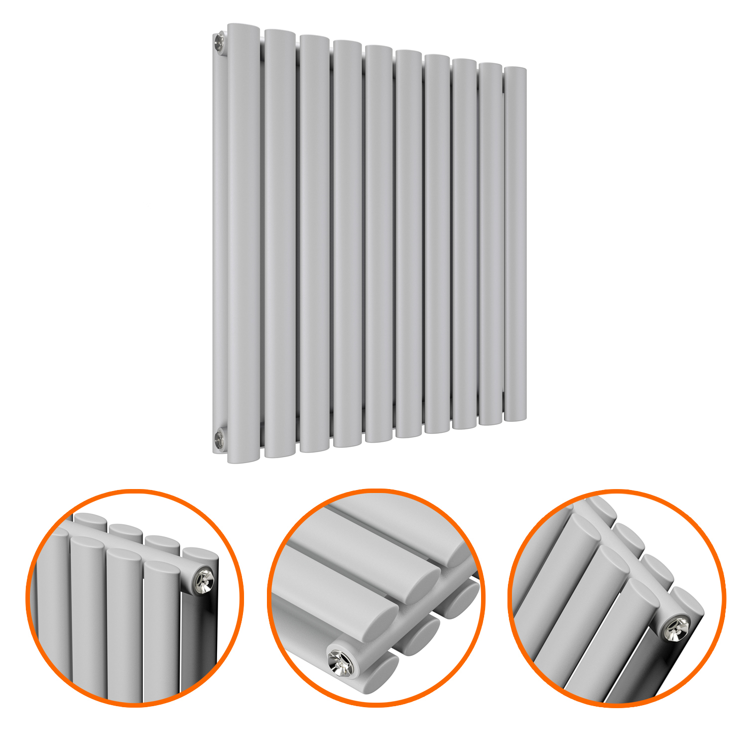 635 x 595mm Feather Grey Double Oval Tube Horizontal Radiator