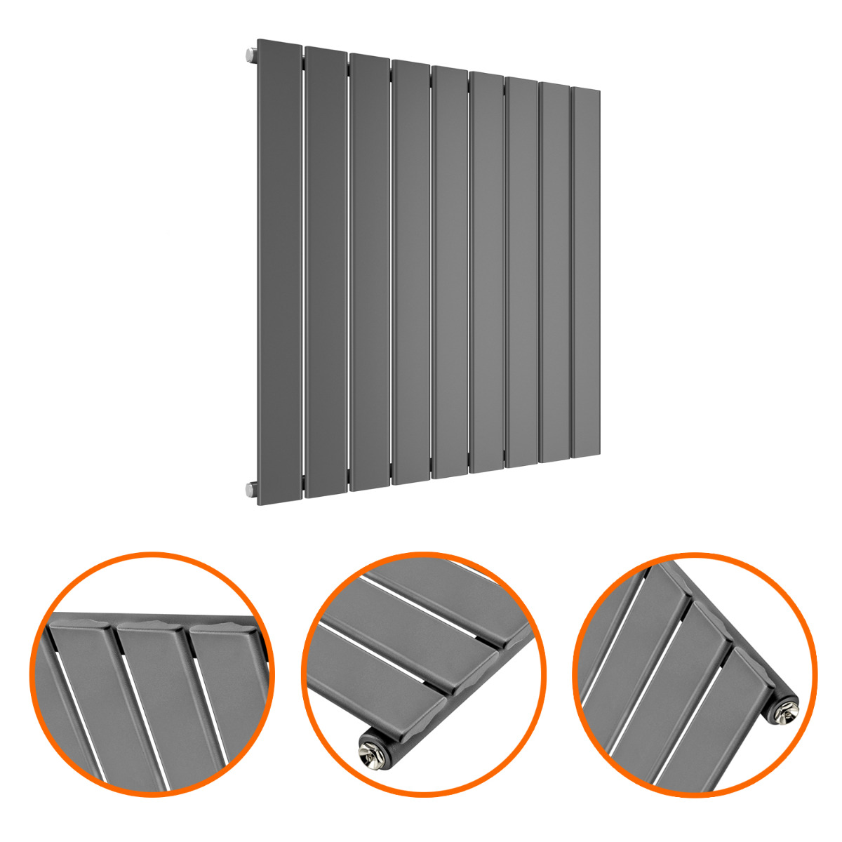 635 x 630mm Anthracite Single Flat Panel Horizontal Radiator
