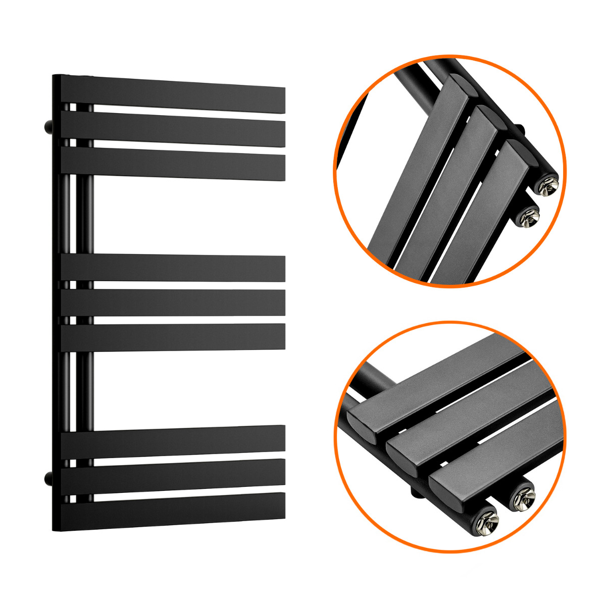 850 x 500mm Black Flat Panel Bathroom Towel Radiator
