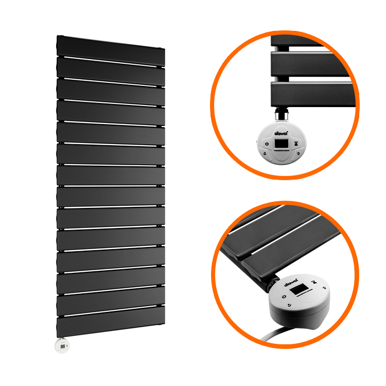 This flat panel vertical designer radiator has a standout matte black finish and comes complete with a heating element which easily allows you to set the radiator at your desired temperature. With the high-quality components used, the radiator heats up exceptionally quick and maintains its warmth for a long duration afterwards.