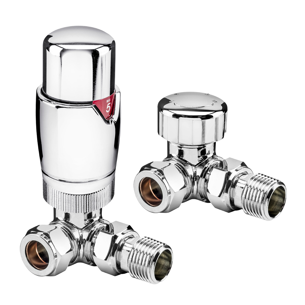 Modern Chrome Thermostatic Radiator Valves, Corner Fitment