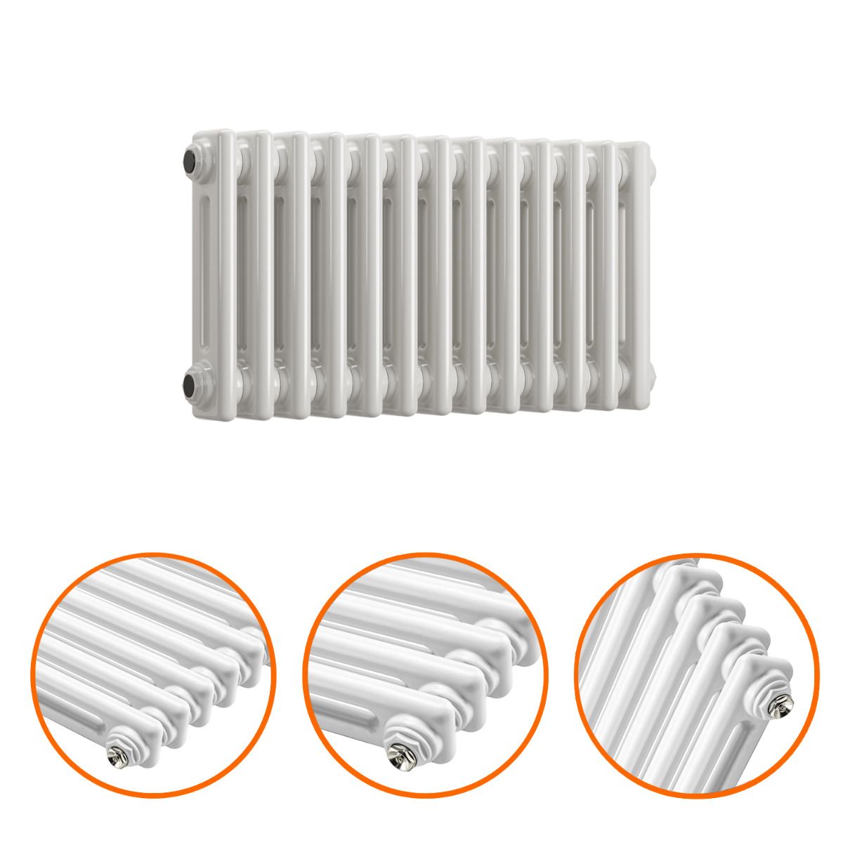 300 x 608mm White Horizontal Traditional 2 Column Radiator