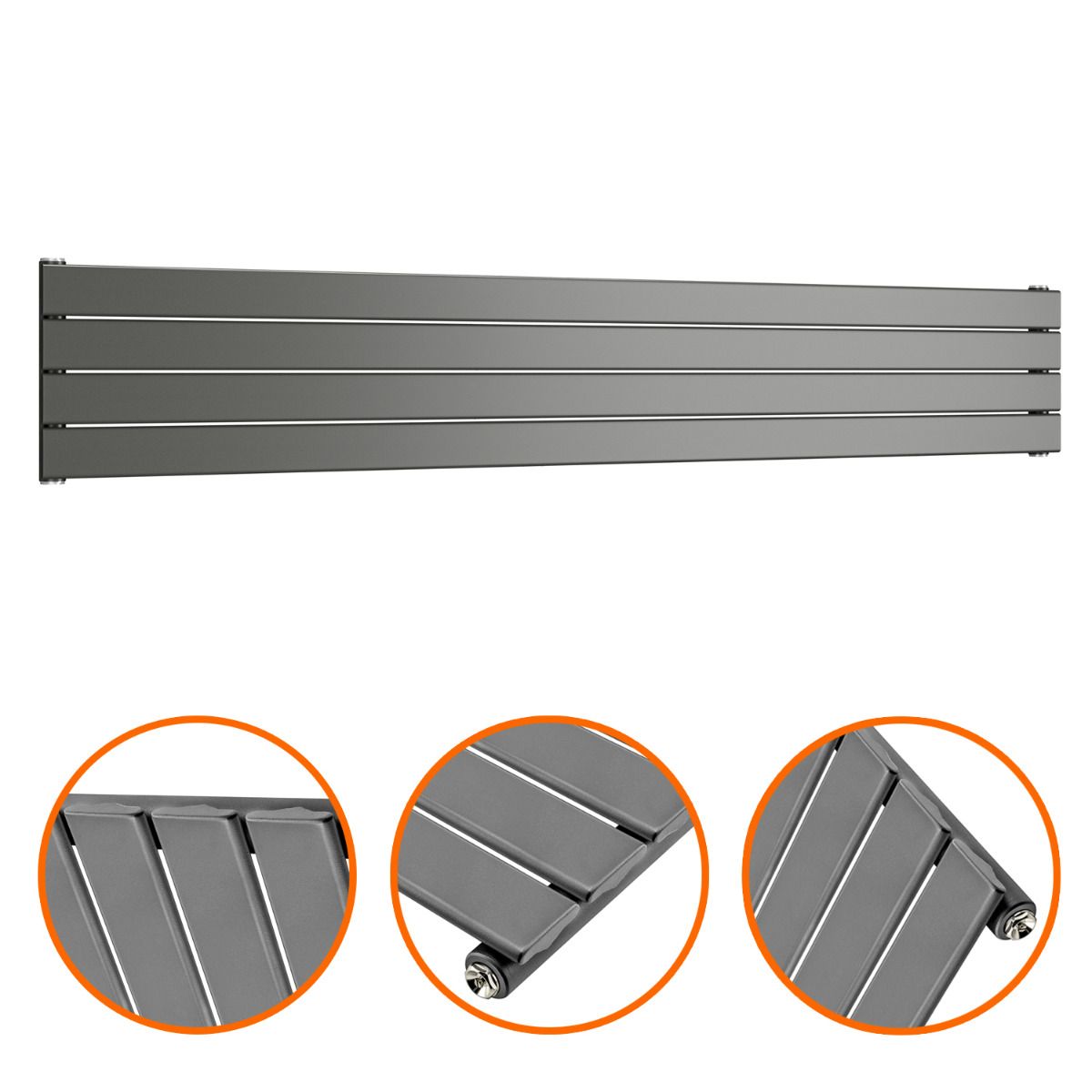 280mm x 1780mm Anthracite Single Flat Panel Horizontal / Landscape Radiator
