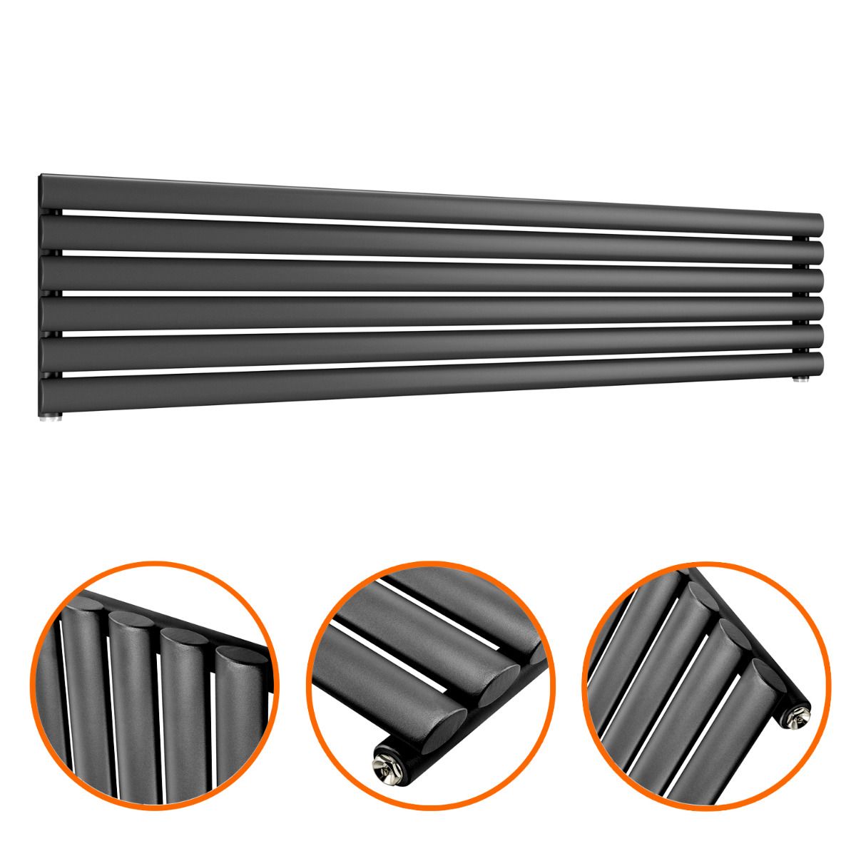 354mm x 1600mm Black Single Oval Tube Horizontal / Landscape Radiator