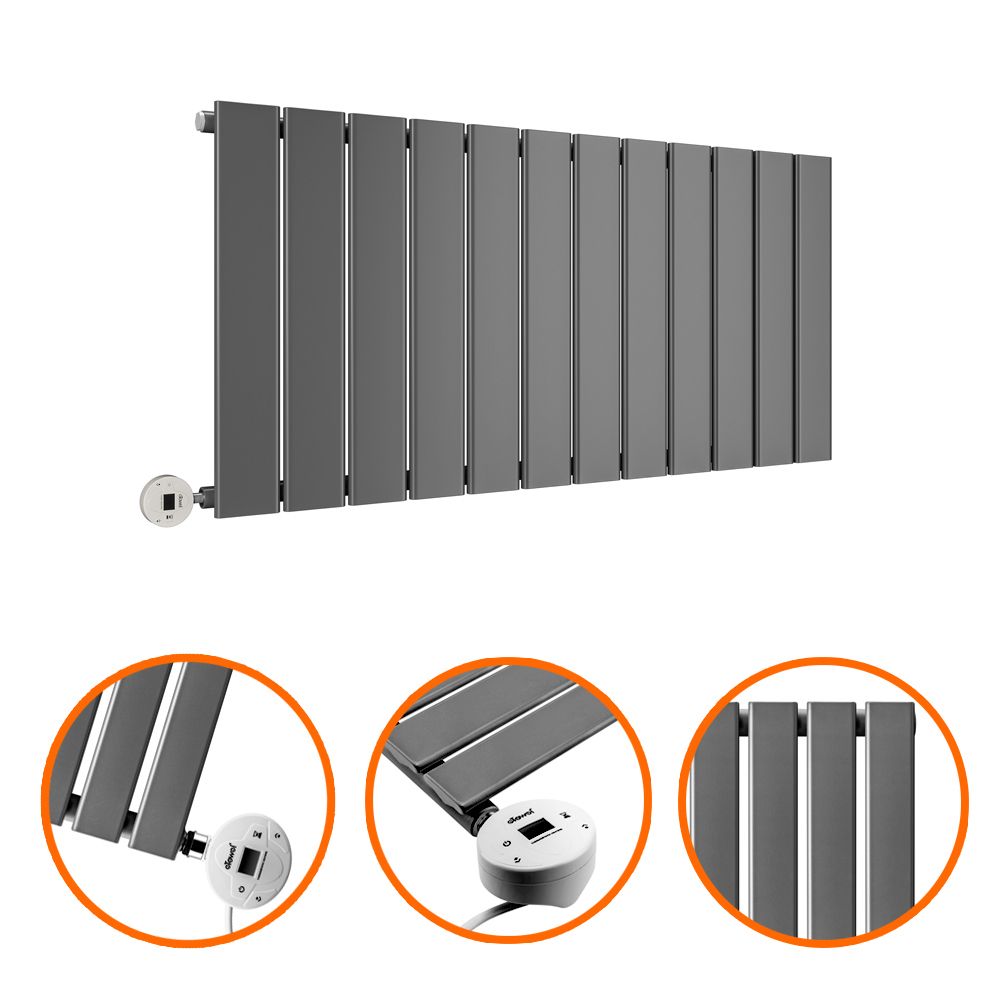 400 x 840mm Electric Anthracite Single Flat Panel Horizontal Radiator