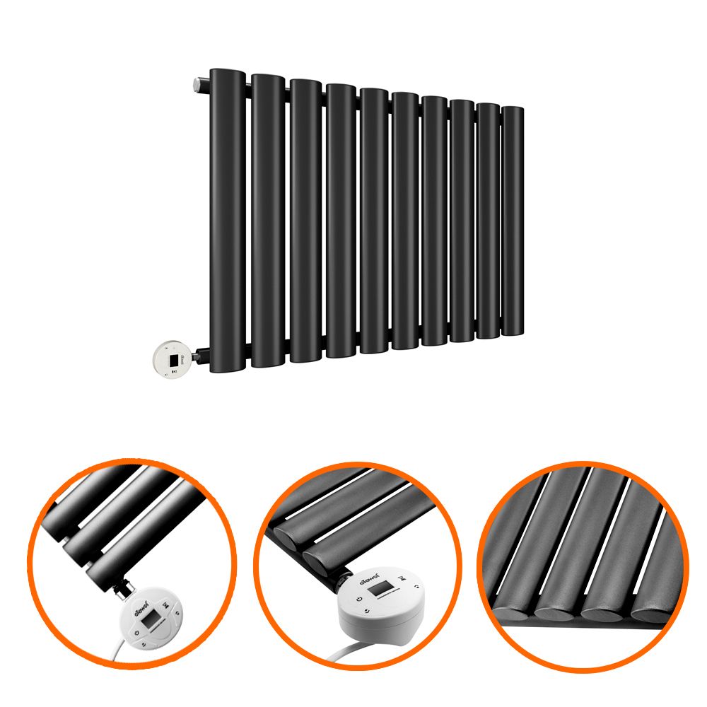 400 x 595mm Electric Black Single Oval Panel Horizontal Radiator