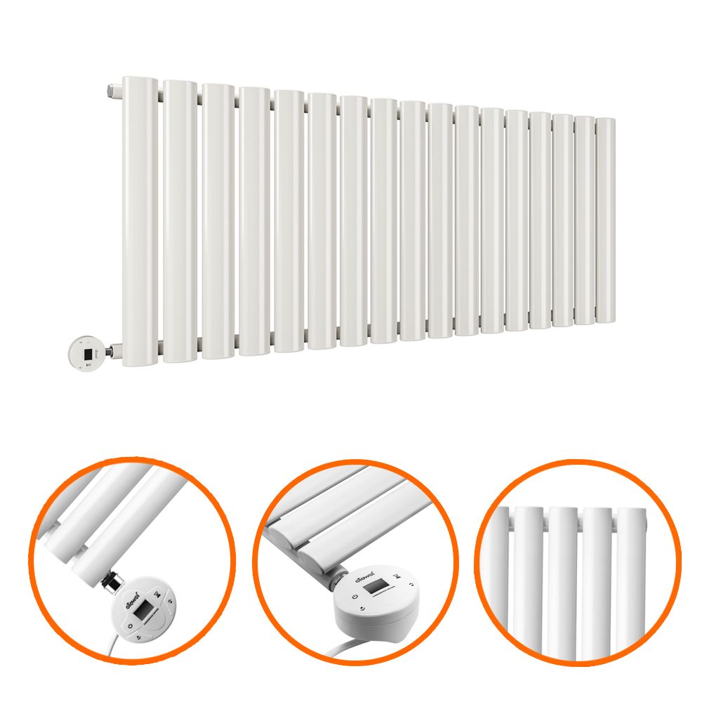 400 x 1000mm Electric White Single Oval Panel Horizontal Radiator
