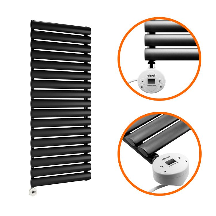 1003 x 400mm Electric Black Single Oval Panel Vertical Radiator