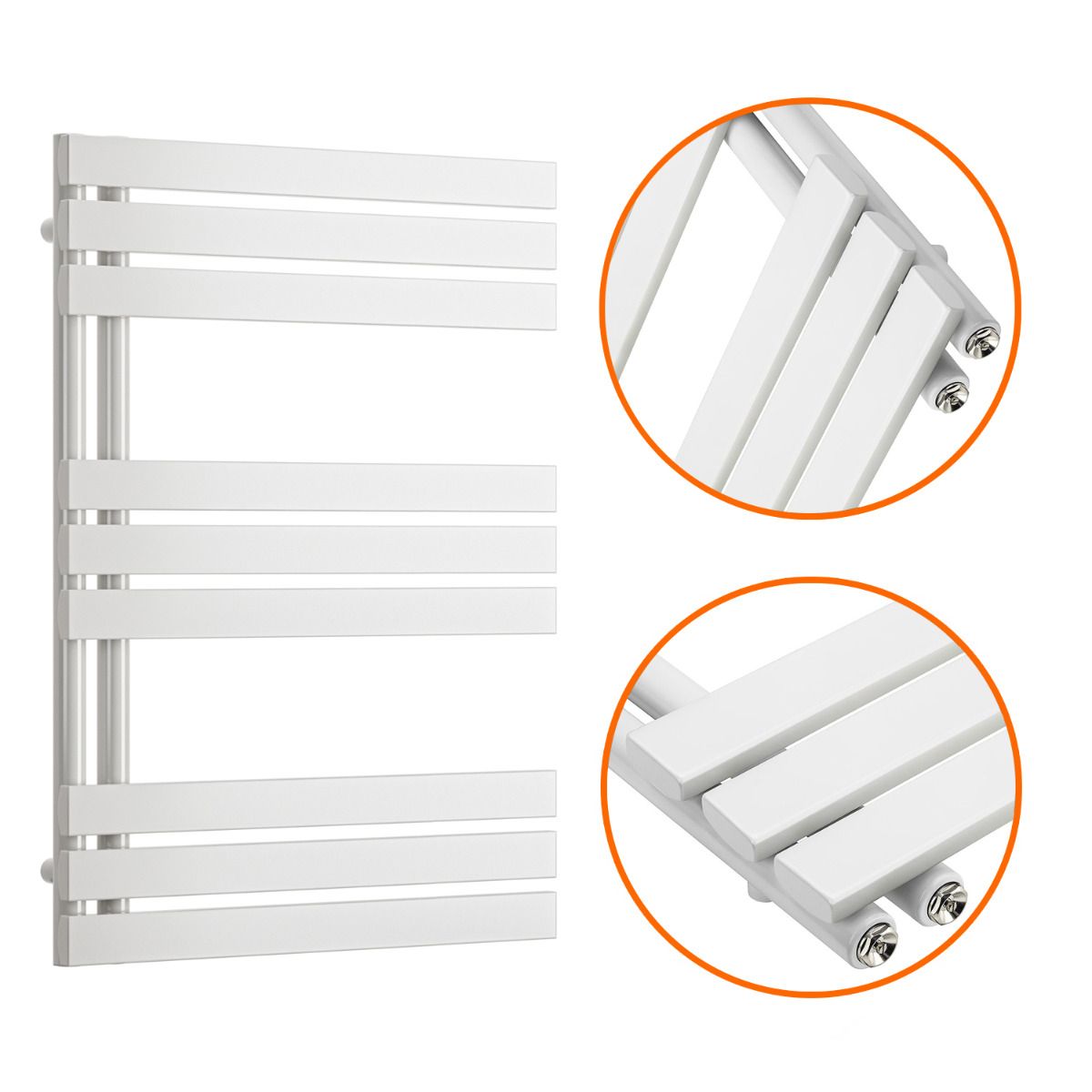 850 x 600mm White Flat Panel Bathroom Towel Radiator